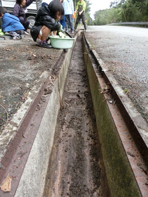 このミミズさがしで側溝がきれいになりヤンバルクイナも道路に出てくることが少なくなり、