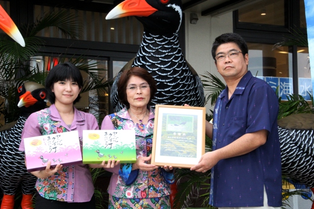 今回のご寄付は、昨年11月から発売されている『ヤンバルクイナまんじゅう』の売り上げの一部から