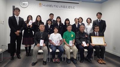 12月27日、那覇市にあるオキナワビアンコにて開催された「第1回ペットリボンプロジェクト基金授与式」に金城副理事長が出席いたしました。