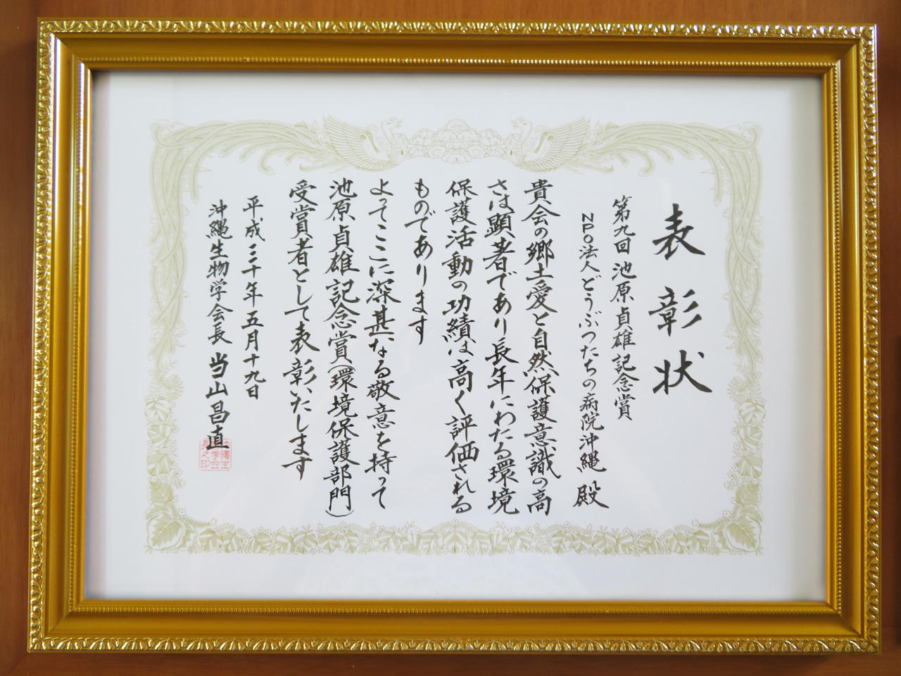 沖縄生物学会に心から感謝し、今後も沖縄の自然環境を未来につなぐために、邁進していきたいと思います。