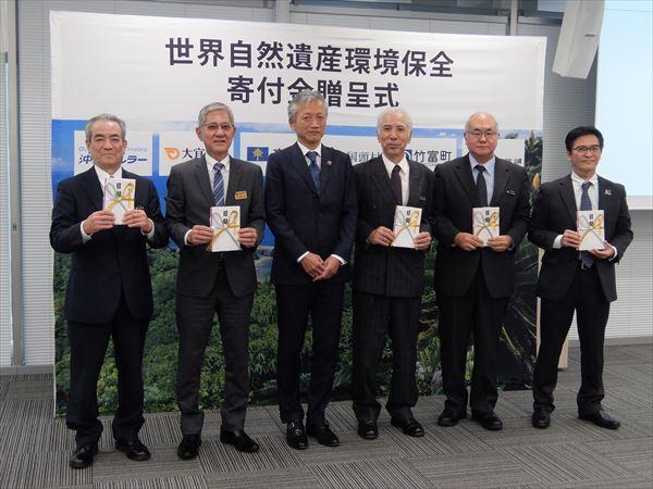 3月2日、沖縄セルラー電話株式会社様より、世界自然遺産に登録された地域の環境保全に役立ててほしいとの願いを込めて国頭村、大宜味村、東村、竹富町の4町村と私たちのNPOに各1000万円ずつのご寄付が贈呈されました。